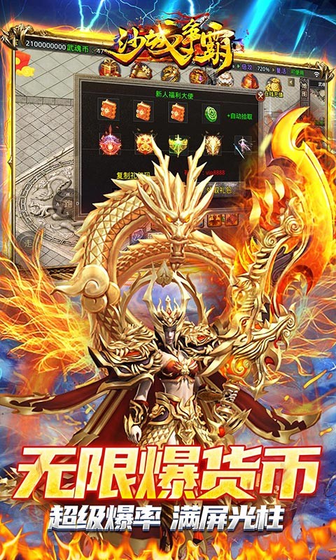 《沙城争霸(超爆满攻速)》火爆来袭,全新的魂环系统,炫酷的战斗特效,实用的pk技能,给玩家带来极致体验。装备全靠爆,材料全靠打,上手简单,玩法简单,在最大程度还原经典传奇的同时,更添加了全新元素。散人和土豪都有不同的玩法,快来下载体验一下把!